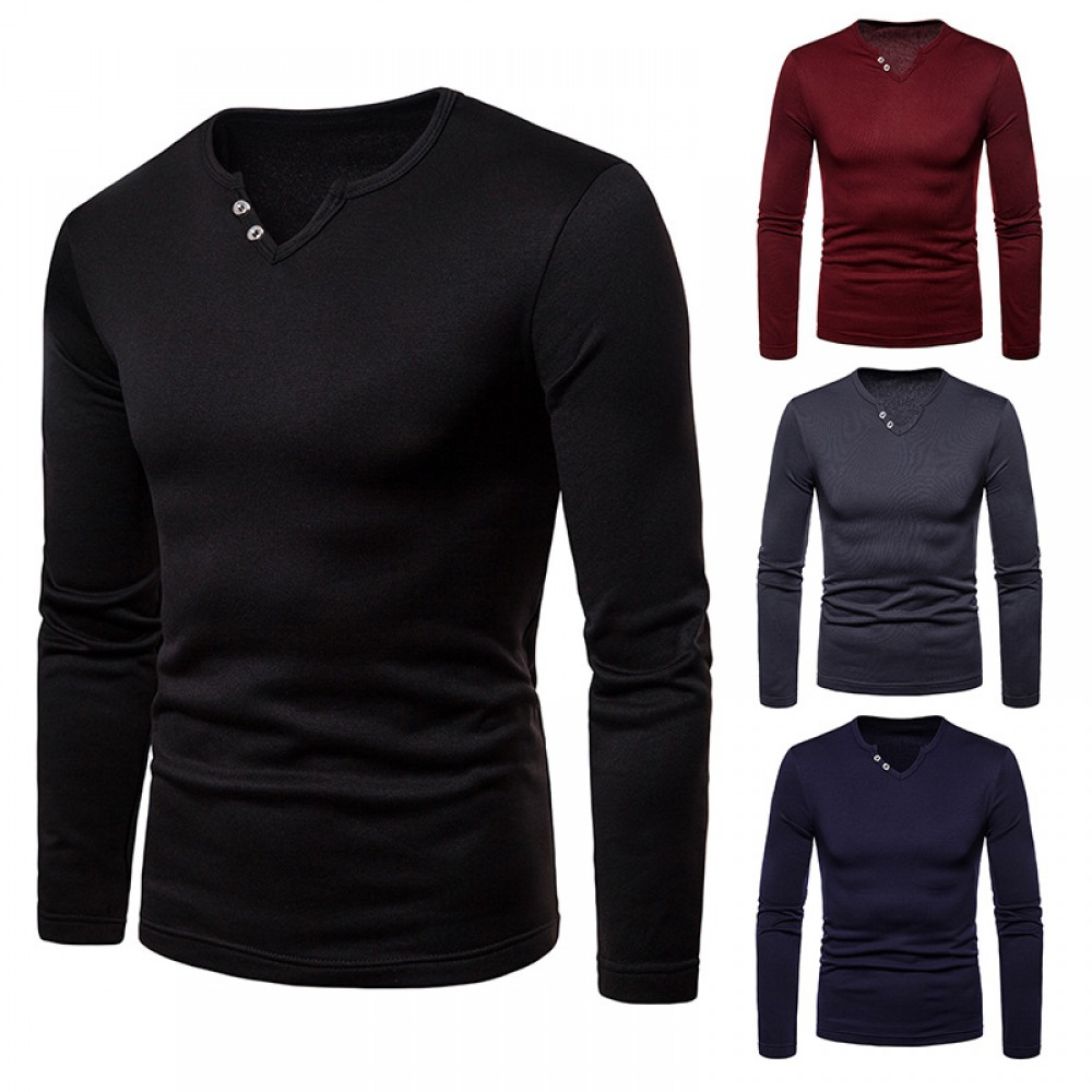Men's Plus Size Velvet Warm V-Neck Long-Sleeved T-Shirt Base Shirt