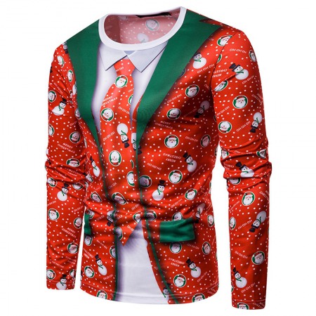 New 3D Personality Printing Fashion Men's Christmas Long-Sleeved T-Shirt