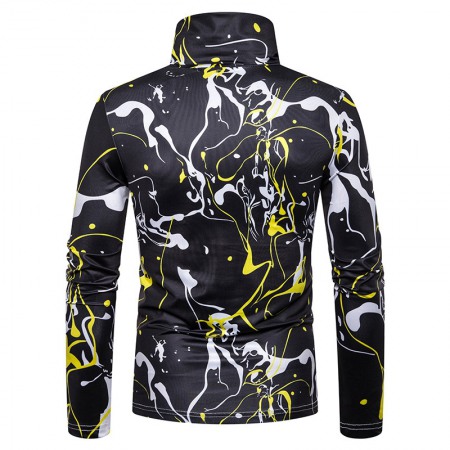 New Men's Plus Size 3D Irregular Printing High Neck Long Sleeve T-Shirt Bottoming Shirt