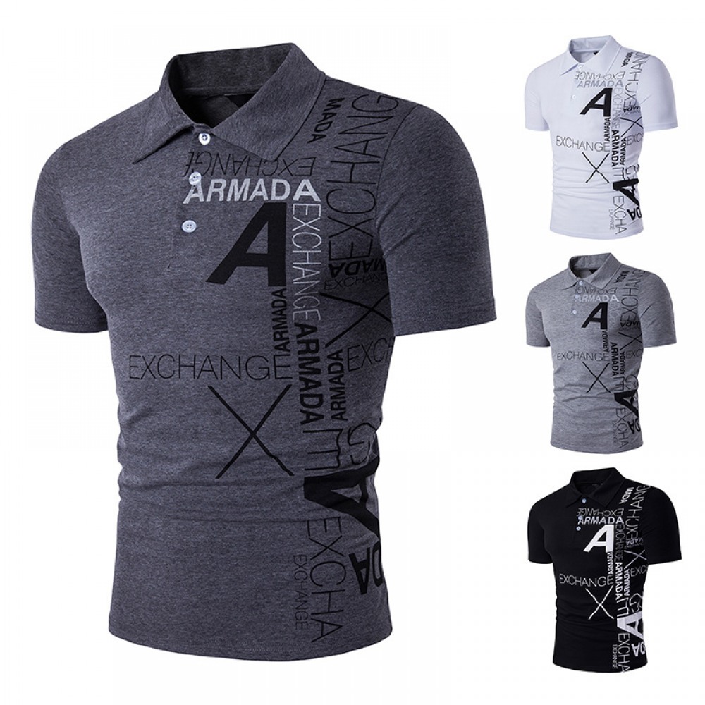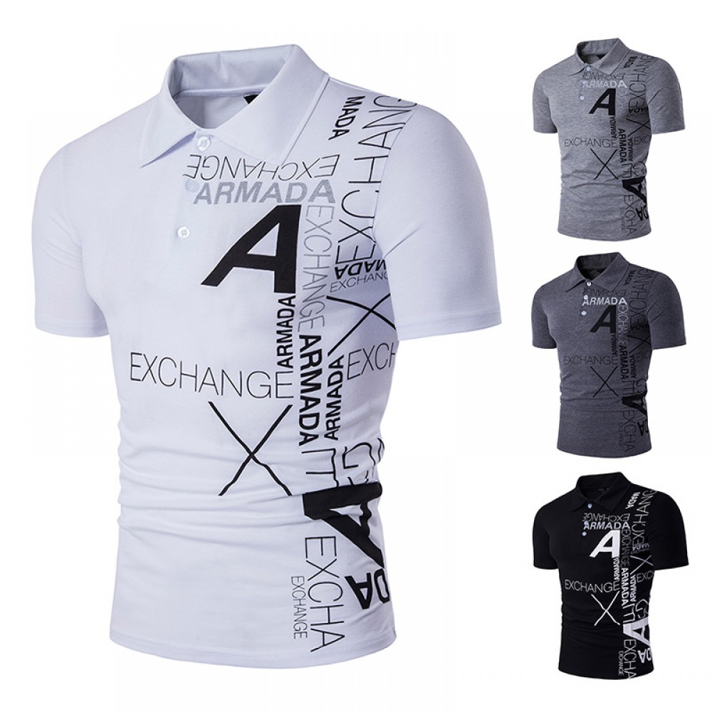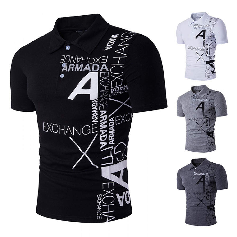 New Men's Style A Letter Printing Lapel Short Sleeve Large Size T-Shirt