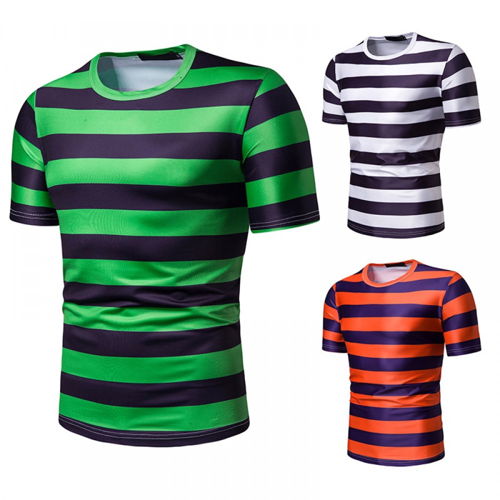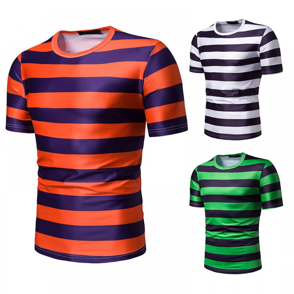 New Summer Men's Short-Sleeved T-Shirt Mens Contrast Striped Slim-Fit Casual T-Shirt