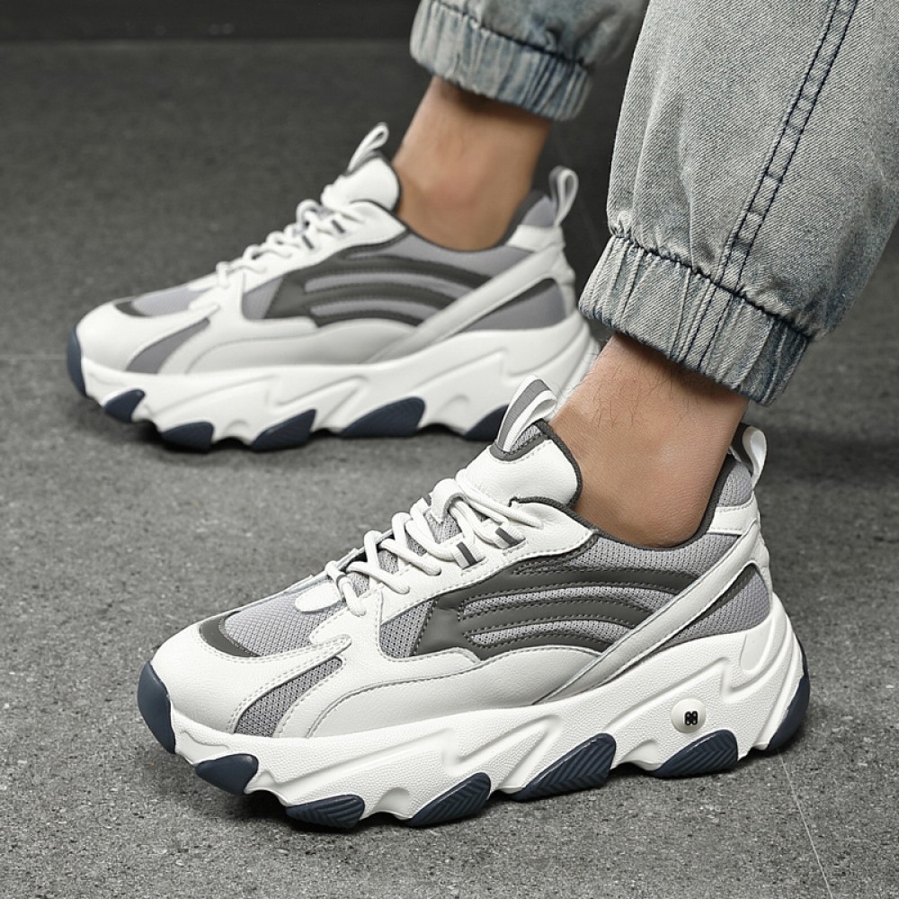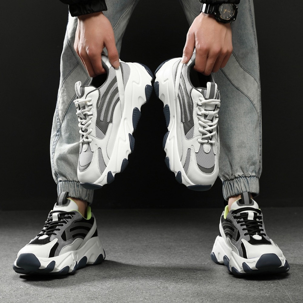 Spring Casual Sports Shoes Men's Fashion Thick-Soled Lace-Up Round Toe