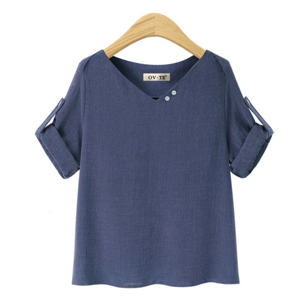 Summer New Style V-Neck Short-Sleeved T-Shirt Hot Loose and Thin Plus Size Sleeve Shirt