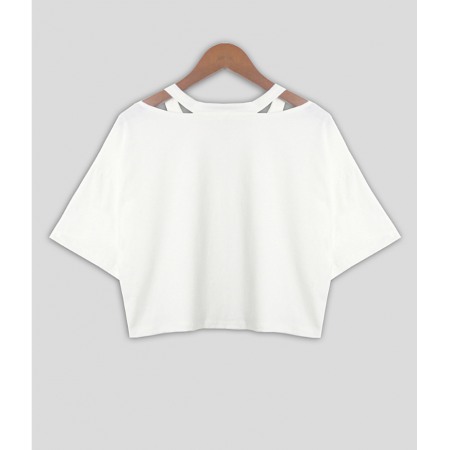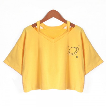 V-Neck Hollow Planet Print Short T-Shirt